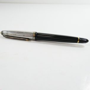 60 / 80 €PINEIDER, Jubileum : Stylo plume en résine noire, le capuchon en argent 925 mil. et or 750 mil. orné d'un cabochon de rubis, plume en or 750 mil. exemptée [Art. 524 bis du CGI al. C]). Poids brut : 25,7g