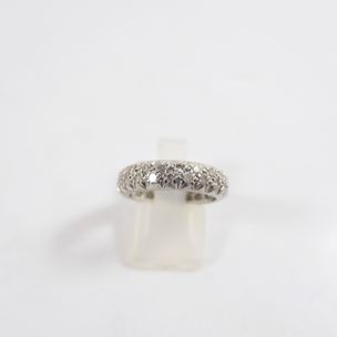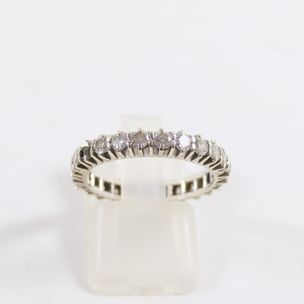 250 / 300 €Alliance américaine : en or gris 750 mil. sertie de diamants taille brillant (0,04 carats environ). (TDD : 50). Poids brut : 4,5g