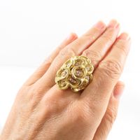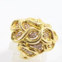 Bague cocktail : en or jaune 750 mil. à fils entrelacé d'or et sertie de petits diamants taille brillant. (TDD: 59). Poids brut : 20g