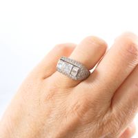 Bague croisée : deux ors 750 mil. orné d'un pavage de petits diamants taille brillant. (TDD : 54). Poids brut : 4,3g. (Manque une pierre).