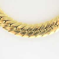Collier : en or jaune 750 mil. à maille anglaise légèrement en chute. (Longueur : 50 cm) (Petits chocs , légère torsion). Poids : 24,9g