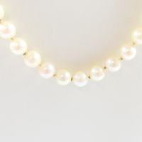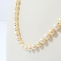 Collier à un rang de perles de culture. Fermoir en or jaune 750 mil. (Longueur : 46 cm environ). Poids brut : 30,5g.
