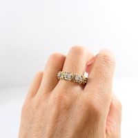 Fine bague fleur : en or jaune 750 mil centrée d'un petit diamant taille 8/8, entourrage de petits rubis ronds. (TDD : 59). Poids brut 2,8g