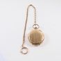 Montre de gousset : en or 585 mil. ciselé à décor d'un semi de fleur et centré d'un cartouche non chiffré. Le cadran à fond émaillé blanc, les heures en chiffres arabes noirs peints, petite seconde à 6H, mouvement manuel à remontage mécanique (diamètre : 5,1cm). ( Accidents, manque verre) Poids brut : 110,8g.