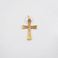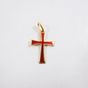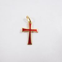 Pendentif croix : en or jaune 750 mil., et émail rouge. (Longueur : 2,3cm). Poids brut : 0,9g