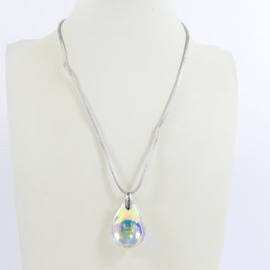 60 / 80 €BACCARAT : collier de la collection "phsydélic" en argent 925 mil. et cordon gris retenant un pendentif orné d'un cristal multicolore. (Dim. : 3,3 x 2 cm environ) (Longueur : 38 cm environ). 9,8 g. brut.