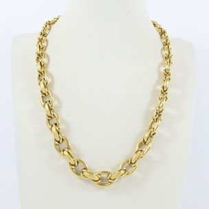 2 100 / 2 300 €Collier : en or 750 mil. À maile fantaisie en chute. Fermoir cliquet à double huit de sécurité. Travail français. (Longueur : 46 cm environ). 38,7 g. brut.