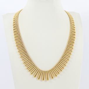 2 600 / 2 800 €Collier collerette : en or 750 mil. À maille légèrement en chute. Fermoir cliquet à huit de sécurité. (Longueur : 43 cm environ). 48,2 g. brut.