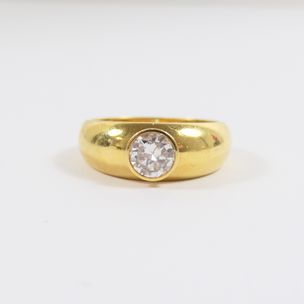 400 / 600 €Bague jonc : en or 750 mil. Centrée d'un diamant brillanté serti clos d'environ 0,79 carat. (Largeur : 0,7 cm environ) (TDD : 55). 5,7 g. brut.