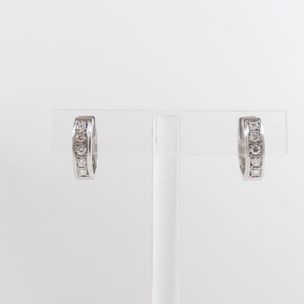 400 / 500 €Paire de créoles : en or gris 750 mil. Ornées de lignes de diamants d'environ 0,05 carat. (Diam. : 1,9 cm environ). 6,9 g. brut.