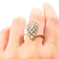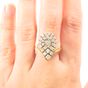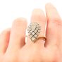 Bague "aigrette" : deux ors 750 mil. Ornée de diamants brillantés. (Largeur : 2,2 cm environ) (TDD : 58). 7 g. brut.