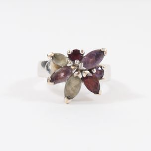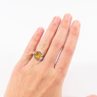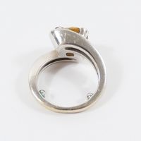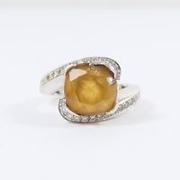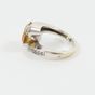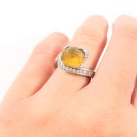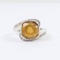 Bague croisée : en or gris 750 mil. Ornée d'une citrine coussin (cassée), épaulée de lignes de diamants. (Largeur : 1,2 cm environ) (TDD : 46). 9,6 g. brut.