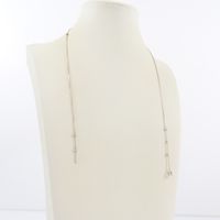 Collier : en or gris 750 mil. À maille forçat ponctuée de diamants brillantés (de 0,04 à 0,3 carat environ) (Longueur : 43 cm environ) (cassé, noué). 2,4 g. brut.