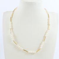Collier de perles de culture : (diam. : 5 mm environ) alternées d'éléments en or 750 mil. Fermoir en or 750 mil. (Longueur : 42 cm environ). 12,7 g. brut.