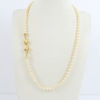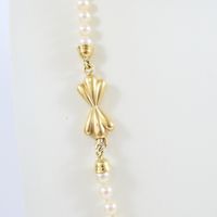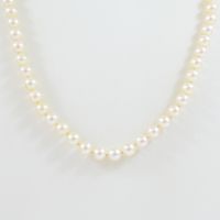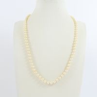Collier de perles de cultures : (diam. : 4,8 mm environ). Fermoir en or 750 mil. (Longueur : 49 cm environ). 19,5 g. brut.