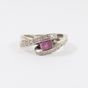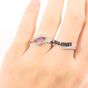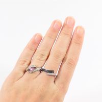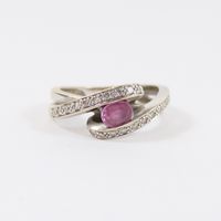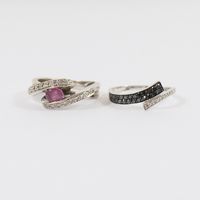 Deux bagues croisée : l'une en or gris 750 mil. Ornée d'un saphir rose ovale épaulée de deux lignes de diamants brillantés. (TDD : 51). L'autre en or gris 375 mil. Ornée de diamants brillantés et de diamants noirs. (TDD : 54).