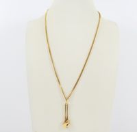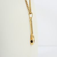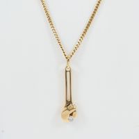 Gilles JONEMANN : Pendentif « Clé à molette » en or 750 mil retenant un diamant brillanté de 0,15 carat environ. Signé. (Hauteur : 3,4 cm). Ce bijou a remporté en 1975 le premier prix du «Diamonds International Awards», organisé par De Beers à New York. On y joint un collier en or 750 mil. à maille gourmette. Travail français. (Longueur : 46 cm environ). 14,4 g. brut.