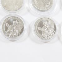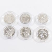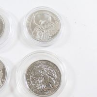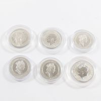 6 pièces en platine 999 mil sous protection plastique (3 d'Elisabeth II de 100 livre sterling ; 1 d'Elisabeth II de 100 pounds ; 1 "Big five"South africa ; 1 Charles III de 100 pounds). 186,8 g net.