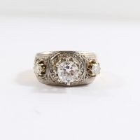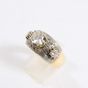 Bague en or 585 mil centrée d'un diamant ovale DT (environ 0,60 ct) entouré de diamants 8/8 et épaulé de 2 diamants (environ 2 x 0,20 ct) (Larg : 1,1 cm ; TDD : 62). 12,8 g brut.