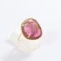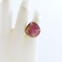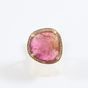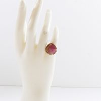 Bague en or 750 mil centrée d'une pierre fine rosé