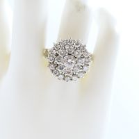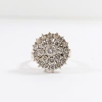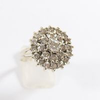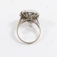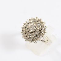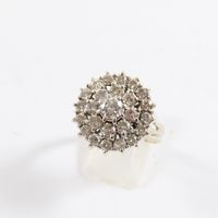 Bague en or gris 750 mil à chaton rond entièrement rehaussé de diamants (environ 2,20 ct au total) (Diam chaton : 1,9 cm ; TDD : 62). 7,7 g brut.