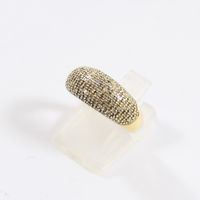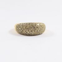 Bague jonc en or 750 mil centrée d'un pavage de diamants 8/8 (salissure) (Larg : 8 mm ; TDD : 52). 3,9 g brut.