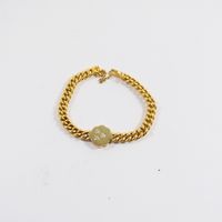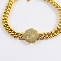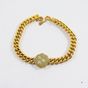 Bracelet en or 750 mil maillons gourmette centré d'un motif alvéolé rehaussé de 3 diamants (Transformation) (Larg maillons : 6 mm ; Long : 16 cm environ). 13,7 g brut.