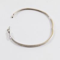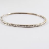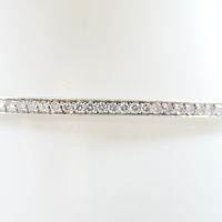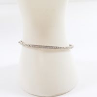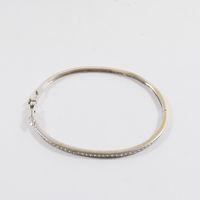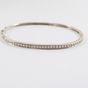 Bracelet jonc en or gris 750 mil centrée d'une ligne de diamants (environ 1,30 ct au total) (Larg : 3 mm ; Diam intérieur : 4,8 x 5,9 cm environ). 9,3 g brut.