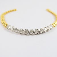 Bracelet ligne en or de couleur 750 mil à maillons articulés figurant des "pastilles" et rehaussé en son centre d'une suite de diamants (environ 1,60 ct au total) (Larg : 5 mm ; Long : 17,5 cm environ). 10,8 g brut.