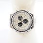 Bracelet-montre d'homme en acier, chronographe à boîtier rond (Diam : 41 mm) et lunette tournante, cadran bicolore à 3 compteurs secondaires, guichet dateur à 4h et index bâton, tour de bras à plaquettes acier articulées (Long : 18,5 cm environ), BREITLING "Jupiter Pilot" mouvement quartz.