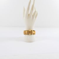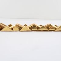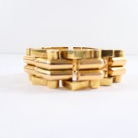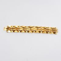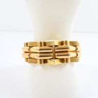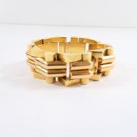 Bracelet tank en or 750 mil à maillons articulés à double godrons, rouleaux et triangles (Larg : 2,4 cm ; Long : 18,5 cm) (Manque 8 de sécurité, rayures d'usage). 107,2 g.