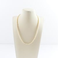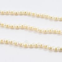 Collier de perles de culture (Diam : de 4,1 à 4,5 mm environ), fermoir en or 750 mil (Long : 47,5 cm environ). 12,1 g brut.