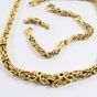 Collier en or 750 mil à maillons byzantin en chute (Larg : de 5 mm à 9 mm ; Long : 46 cm), Bracelet cassé en or 750 mil à maillons byzantin et guilloché (Long : 19,5 cm environ). 40,8 g.