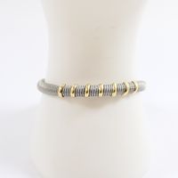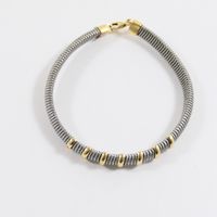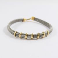 E) Art 524 bis du CGI al c : Bracelet flexible en or 750 mil et acier (trace de colle) (Larg : 6 mm ; Long : 19 cm). 9,7 g brut.