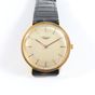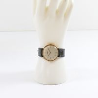 Montre en or 750 mil sur bracelet cuir usagé, boît