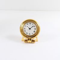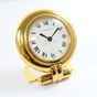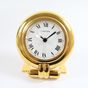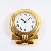 Pendulette de bureau CARTIER "Colisée" à godrons en métal doré, mouvement quartz, fonction réveil (Bel état).