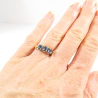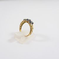 Bague : 2 ors 750 mil. sertie de 3 saphirs ovales (TDD : 52) (égrisures). 3,4 g. brut.