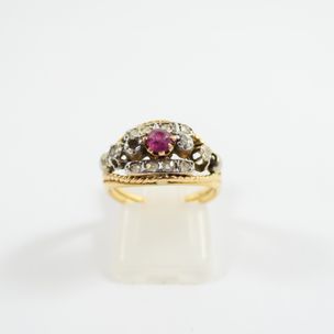 Bouton d'oreille : 2 ors 750 mil. (diamants taille 8/8) (manque système) (0,6 g. brut), et pendentif 2 ors 375 mil. (diamant taille 8/8) (0,6 g. brut) (E. : art. 524 bis du CGI al. C). 1,2 g. brut total.
