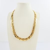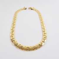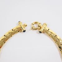 Collier : en or 750 mil. à maillons haricot orné de petits cabochons de saphir aux extrémités (longueur : 47 cm, largeur : 1 cm). 52,2 g. brut.