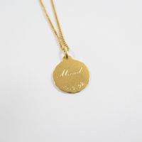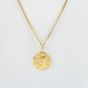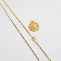 Médaille religieuse : en or 750 mil. figurant le profil de la Vierge Marie (diamètre : 1,8 cm) (2,8 g.), sur collier en or 750 mil. à maillons gourmette (longueur : 44,5 cm) (4,9 g.). Poids total : 7,7 g.