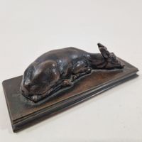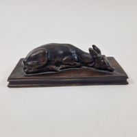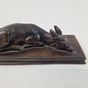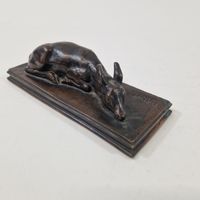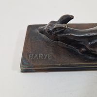 Antoine-Louis BARYE (1795-1875) Faon de cerf couché Modèle créé en 1840 ; fonte de l’atelier Barye entre 1857 et 1875 Bronze à patine brune Signé « BARYE » sur la terrasse H. 4 cm, terrasse L. 15 x P. 6 cm Littérature en rapport : -Michel Poletti, Alain Richarme, Barye, le catalogue raisonné des sculptures, Paris, Gallimard, 2000, modèle répertorié sous le n° A162, p. 305.