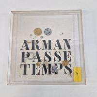 ARMAN (1928-2005) Passe Temps, 1971 Ouvrage « Passe Temps », livre sérigraphié avec reliure en carton, dans un emboîtage en plexiglas, avec inclusions de mécanismes de montres. Emboîtage signé et numéroté 142/150, d’une édition à 150 +40EA +10HC 41 x 40 x 8,5 cm (l’emboîtage) Cette œuvre est référencée dans les archives de la Fondation A.R.M.A.N. sous la référence ARM000940 (Livre : salissures, petites rousseurs, légère oxydation du papier Emboîtage : plexiglas accidenté dans la partie inférieure, rayures, et traces d’étiquette )