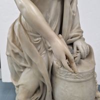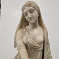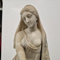Ecole française vers 1800 Vestale Ronde-bosse en marbre blanc H. 71 cm, dont base en marbre gris H. 4 cm (Accidents et restaurations)