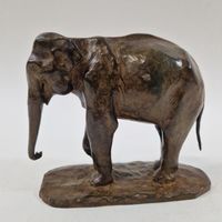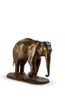 Paul Fernand SIMON (1892-1979) Éléphant Bronze à patine brun clair ; fonte posthume de 2015 Signé « Paul Simon » sur la terrasse Porte le cachet du fondeur « CIRE PERDUE F. PAUMELLE », daté « 2015 » et numéroté « 3/8 » sur la terrasse H. 18 cm, terrasse L. 20 x P. 9 cm Fils des peintres Lucien Simon et Jeanne Dauchez, Paul Simon se forme à l’architecture à l’École des beaux-arts de Paris, puis à la sculpture dans l’atelier d’Antoine Bourdelle à la Grande Chaumière. Pendant l’entre-deux-guerres, il se spécialise dans la sculpture animalière prenant pour modèles les animaux de la ménagerie du Jardin des Plantes.