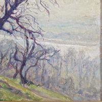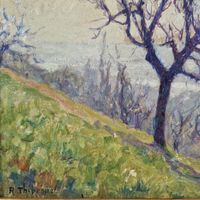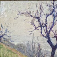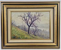 Raymond THIBESART (1874 – 1968) Matinée d’avant printemps Huile sur carton Signé en bas à gauche "R Thibesart" Porte au dos la mention manuscrite "R Thibesart" Porte une étiquette de la Galerie Tuffier 24 x 32, 5 cm