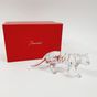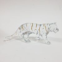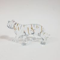 BACCARAT : "Tigre clair" Sujet en cristal transparent partiellement doré, cachet sous la base. H. : 7,5 cm, long. : 17,5 cm Avec sa boîte d'origine, un livret et des patins. Boîte avec de très légères éraflures.
