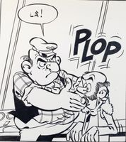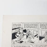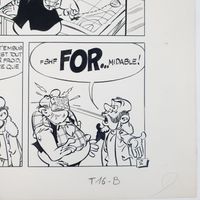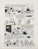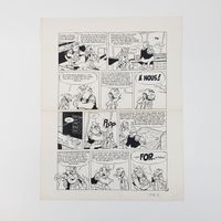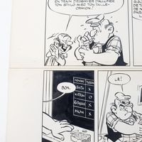 Christian GODARD (1932-2024) : "Martin Milan", première série, Tome 2, Eglantine de ma jeunesse, histoire courte "Miss Radada", planche 2. Récit court publié dans Tintin puis paru en album en 1972 au Lombard. Encre de Chine sur papier, monogrammé. Dim. 49 x 38 cm. (Non encadré). Coupée en 2 parties scotchées, traces de scotch, rousseurs, petites pliures. Expert : Pauline TESTUT paulinetestut@gmail.com