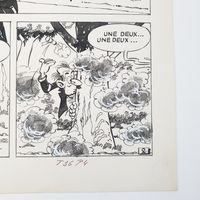 Christian GODARD (1932-2024) : "Martin Milan", L'en cas de malheur, planche 2. Histoire parue dans Tintin en 1968, puis publiée en album au Lombard en 1986. Encre de Chine sur papier, monogrammé. Dim. : 47,5 x 32,9 cm. (Non encadré). Quelques rousseurs, taches, reprises au correcteur blanc. Expert : Pauline TESTUT paulinetestut@gmail.com