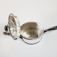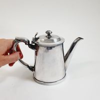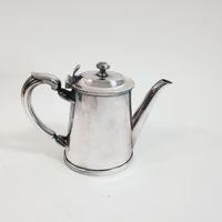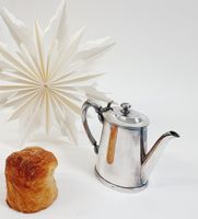 CHRISTOFLE, fin XIXème, début XXème siècle : Cafetière égoïste en métal argenté tronconique, modèle uni à doucines et anse volute, signée. Numérotée 2723113. Poinçon CC période 1862-1935. Pour l'hôtellerie. H. 13,5 cm Minuscules rayures, très bon état.