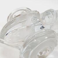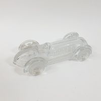 DAUM France, voiture modèle LE MANS : Voiture de course monoplace "Le Mans" portant le numéro 7 en cristal moulé pressé partiellement satiné, signée sur le côté. Modèle crée par Xavier Froissart en 1986. Dim. : 9 x 38 x 16 cm Infimes rayures.
